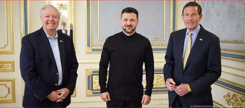 Өткен аптада республикашыл Линдси Грэм және санкциялар туралы заңның тағы бір авторы, демократ сенатор Ричард Блументаль Украина президенті Володимир Зеленськиймен Рүмде Украинаны соғыстан кейінгі қалпына келтіру конференциясы аясында кездесті. Кейінірек соңғысы сенаторлардың санкциялар туралы заң жобасын жоғары бағалады. «Бұл, сөз жоқ, бейбітшілікті жақындататын және жақындататын және дипломатияның босқа кетірмейтін тұтқа», – деді ол.