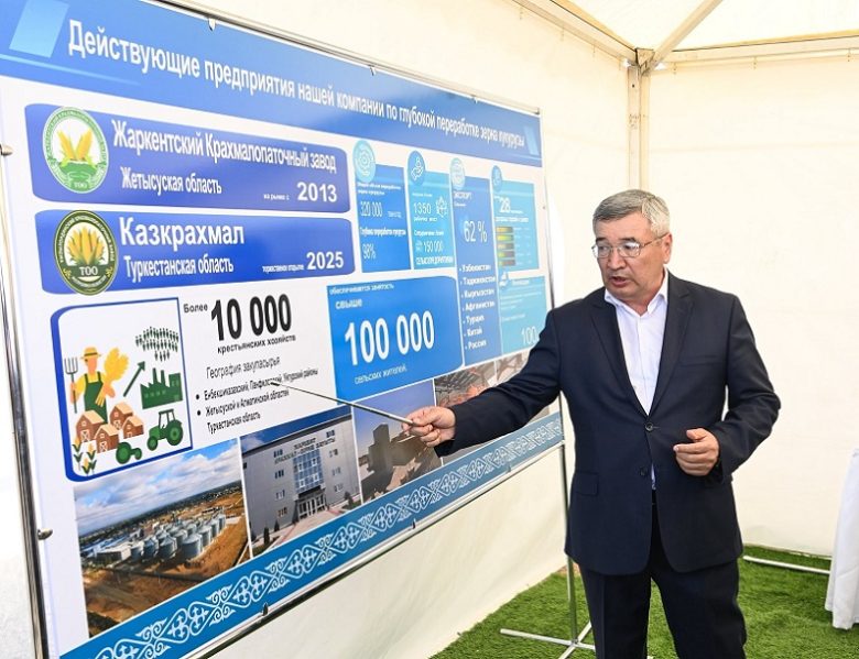 «Президентіміз айқындап берген экономиканы әртараптандыру, өңдеу өнеркәсібін дамыту жөніндегі стратегиялық міндеттер аясында аймағымызда нақты істерді кезең-кезеңімен жүзеге асырып келеміз. Өткен жылы тамыз айында Жетісу өңіріне арнайы жұмыс сапарымен барып, еліміздегі ірі өндіріс орындарының бірі – «Жаркент крахмал-сірне зауытымен» жан-жақты таныстық. Келіссөздер нәтижесінде серіктестіктің қолдауымен облысымызда жүгері дақылын терең өңдейтін жаңа зауыт салу жөнінде маңызды келісімге қол жетті», – деді Нұрлыбек Машбекұлы өз сөзінде.