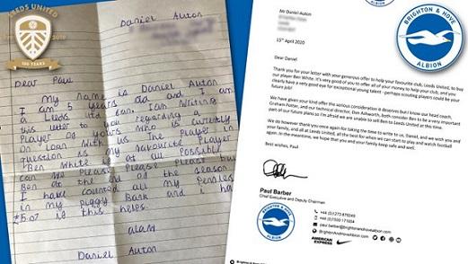 ЛОНДОН. 19 сәуір. Ағылшынның «Лидс» командасының бес жасар жанкүйері Дэниел Отен «Брайтон» клубының президентіне хат жазып, сүйікті футболшысы, қорғаушы Бен Уайтты өз командасына беруді сұрады. Бұл туралы Eurosport хабарлады.
